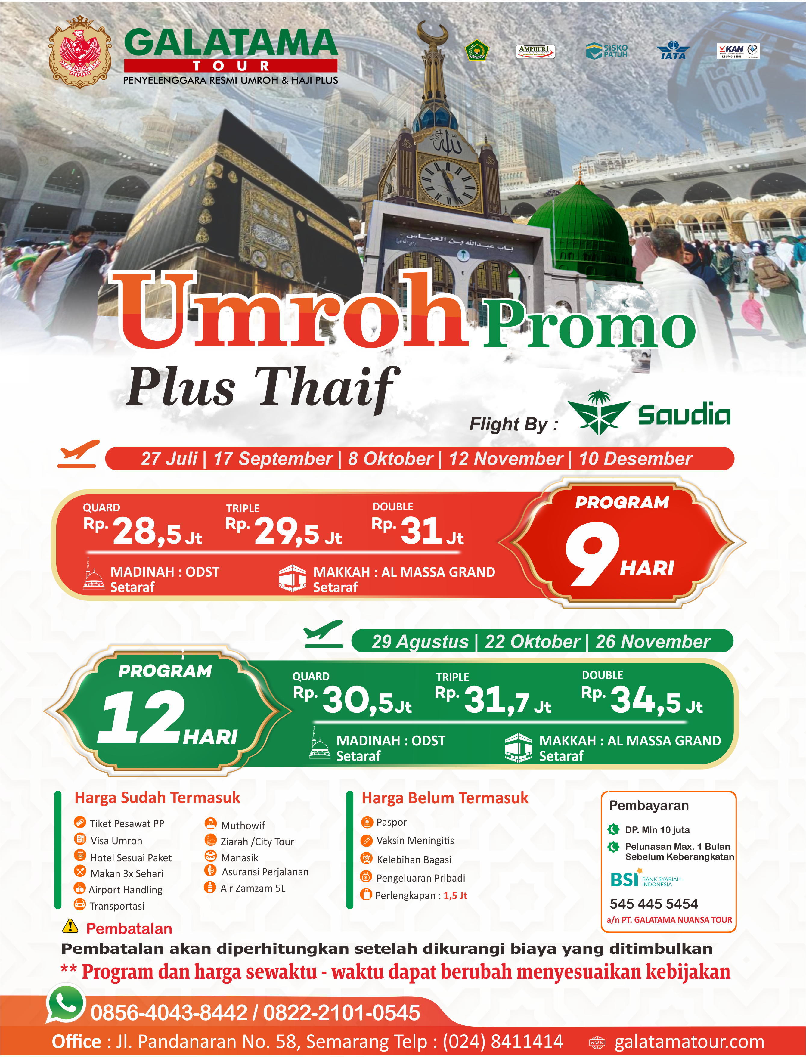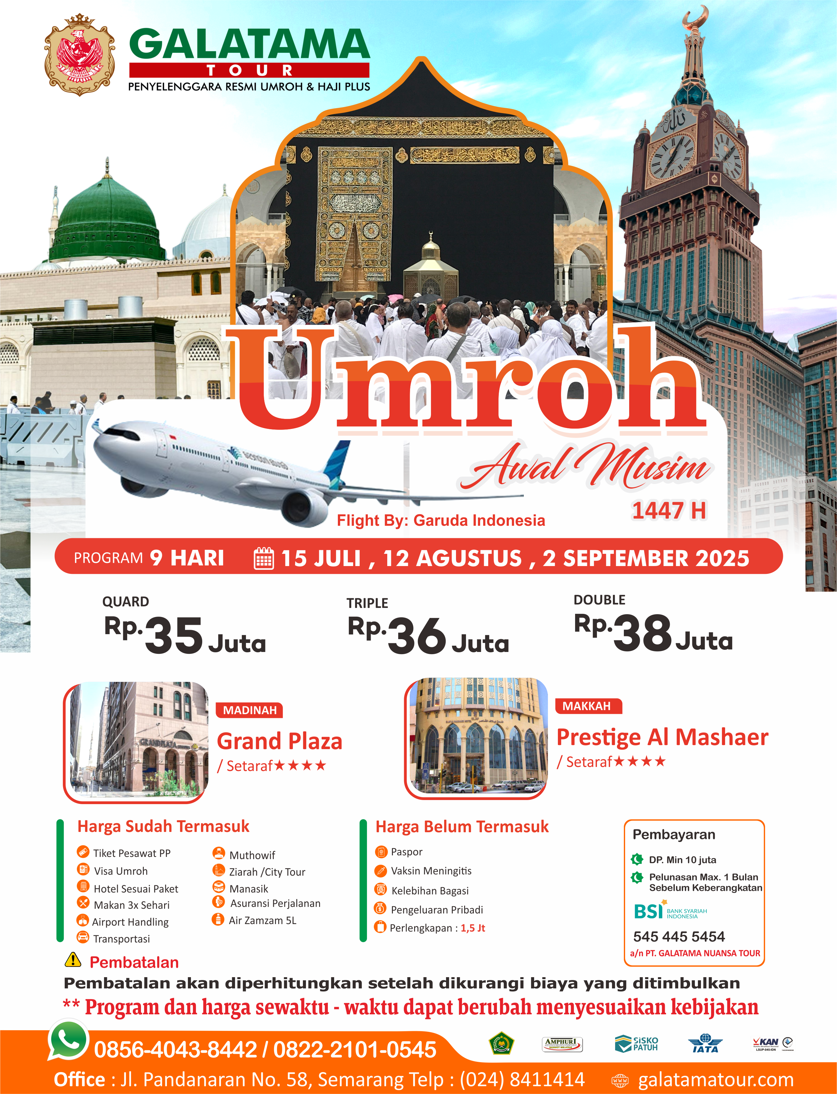 Alhamdulillah saya sudah 3x ini umrah dengan Galatama dan tidak pernah mengecewakan.